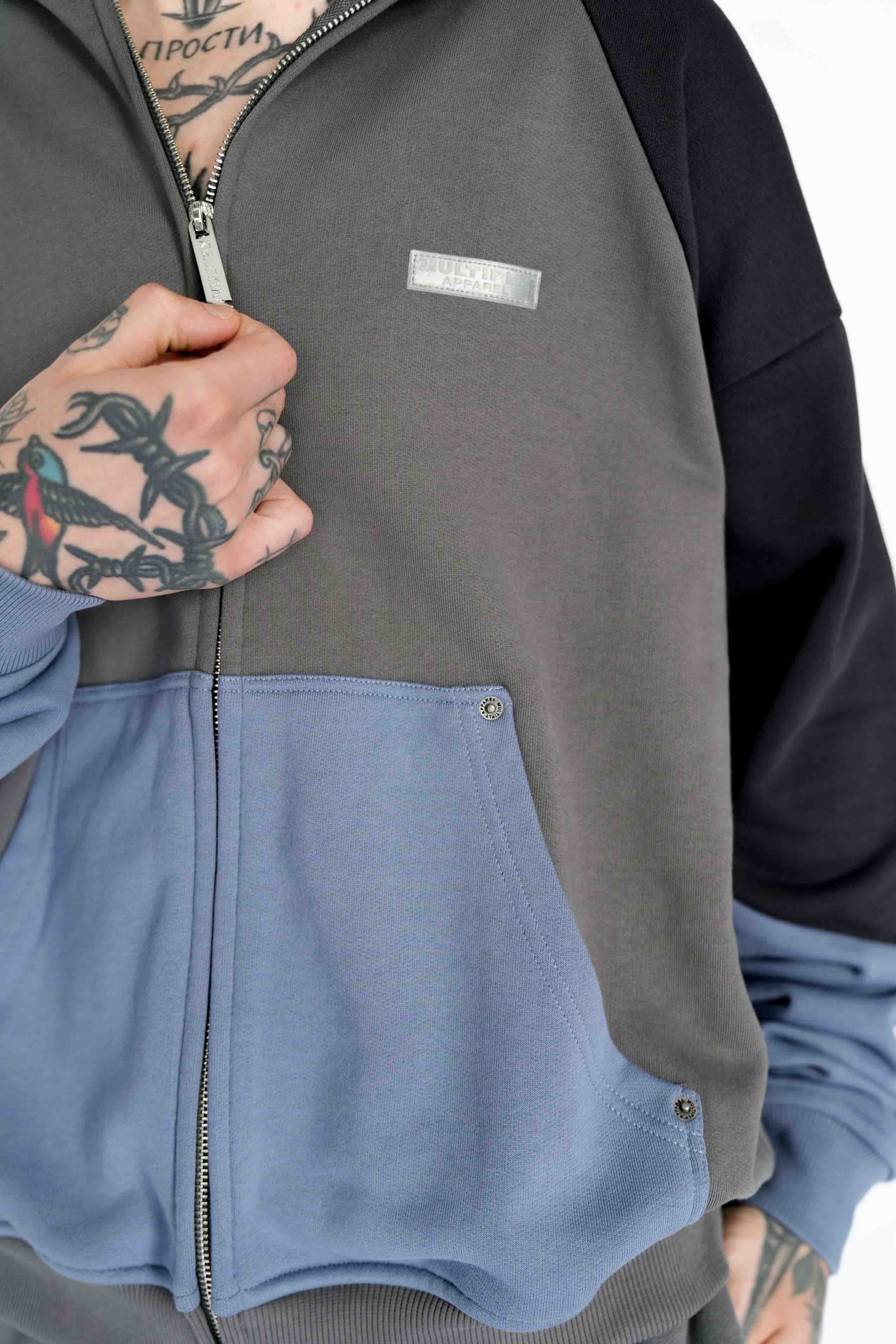 Oversize Divided Zip Hoodie REINFORCED Gargoyle